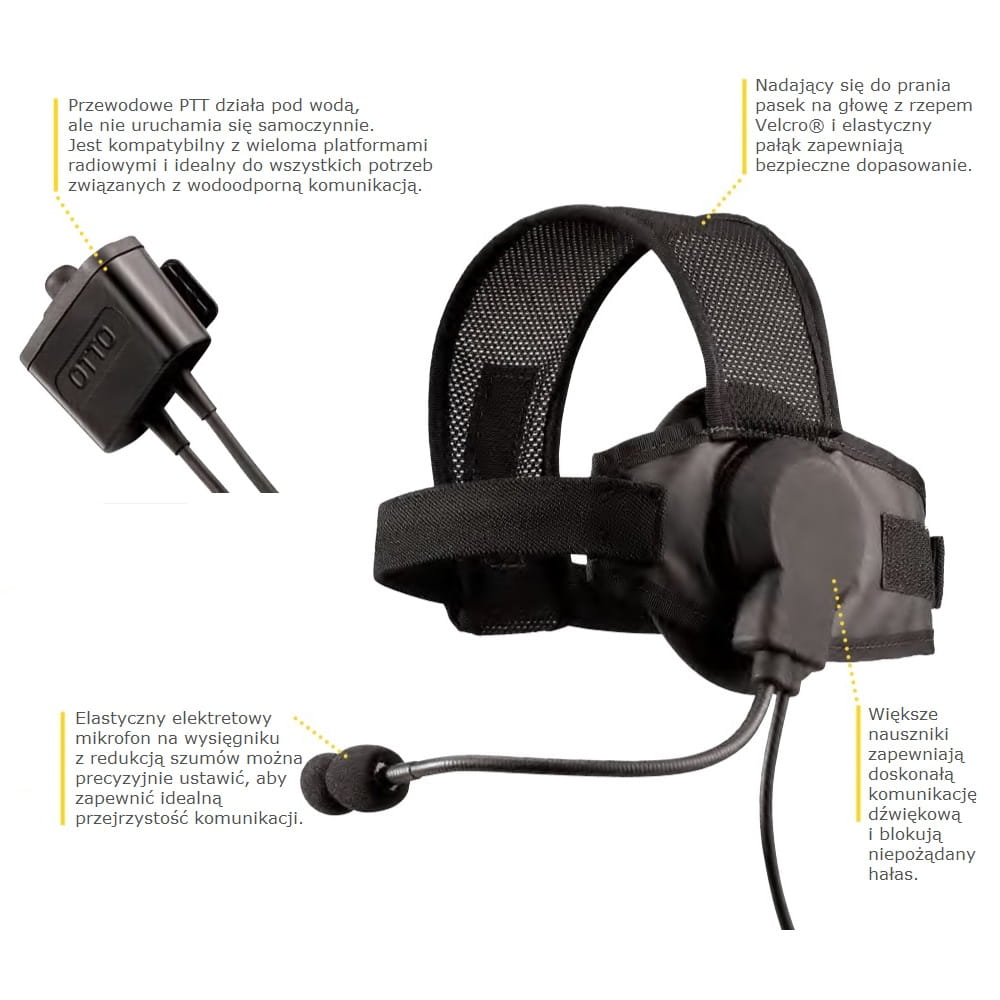 - Specjalnie zaprojektowany, większy, zauszny głośnik gumowy i wodoodporny mikrofon zostały przetestowane w ekstremalnych warunkach, aby zapewnić, że zestaw słuchawkowy będzie nadal zapewniał wyraźną komunikację.